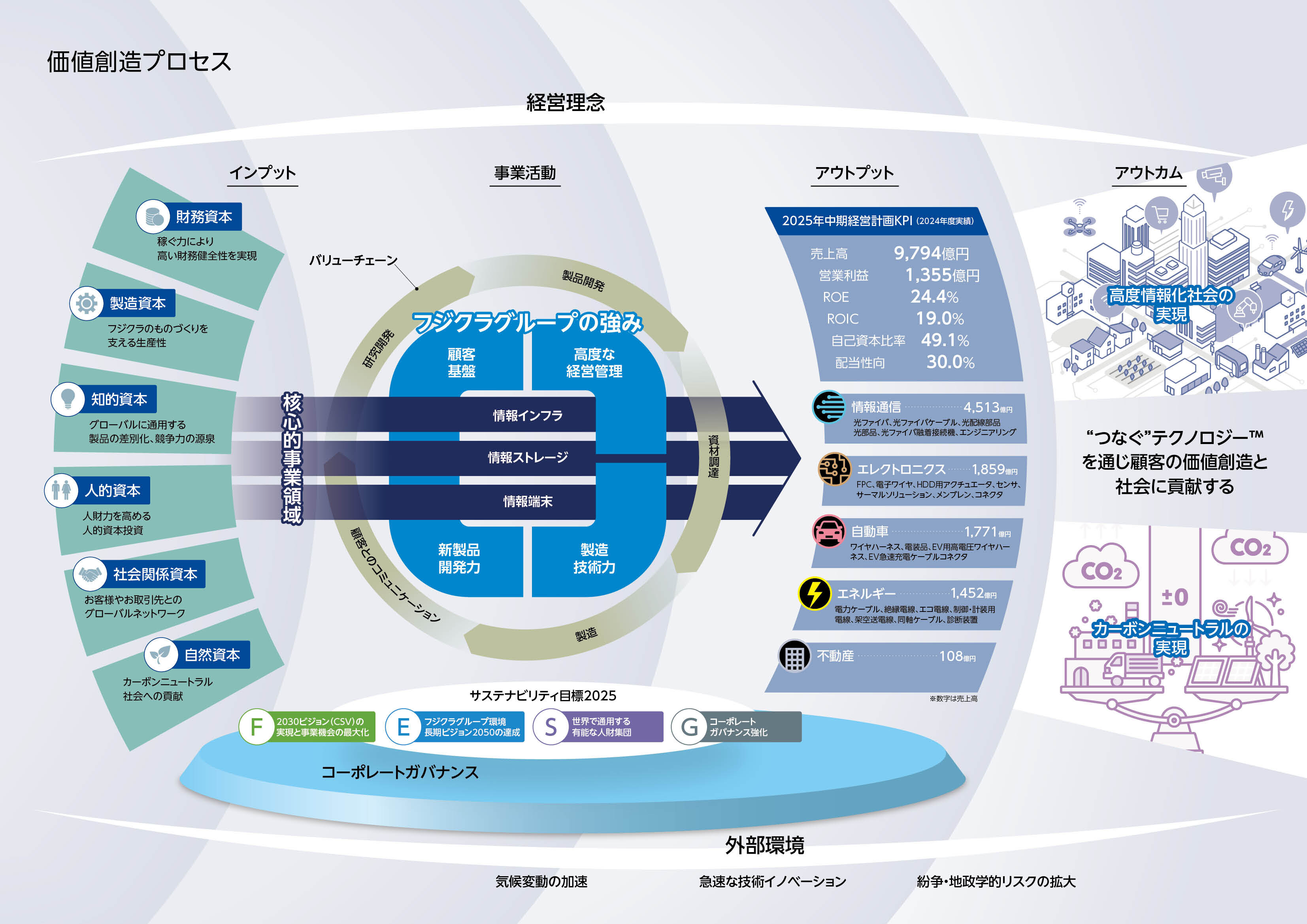 Based on our Group Corporate Philosophy MVCV, the Fujikura Fujikura Group will work to achieve sustainable development for Fujikura Group and the realization of a better society by teaming up with customers through "Tsunagu" Technology™ and solving problems faced by customers and society.