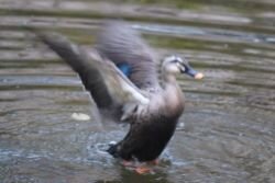 羽繕いの最後に羽をパタパタッと羽ばたかせた後、楽しそうにスイスイと泳ぎ続けていました。