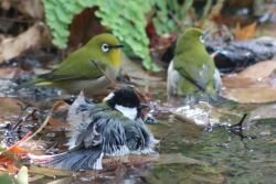メジロとシジュウカラは混群と言って別種同士で群れをつくることもあるそうです。