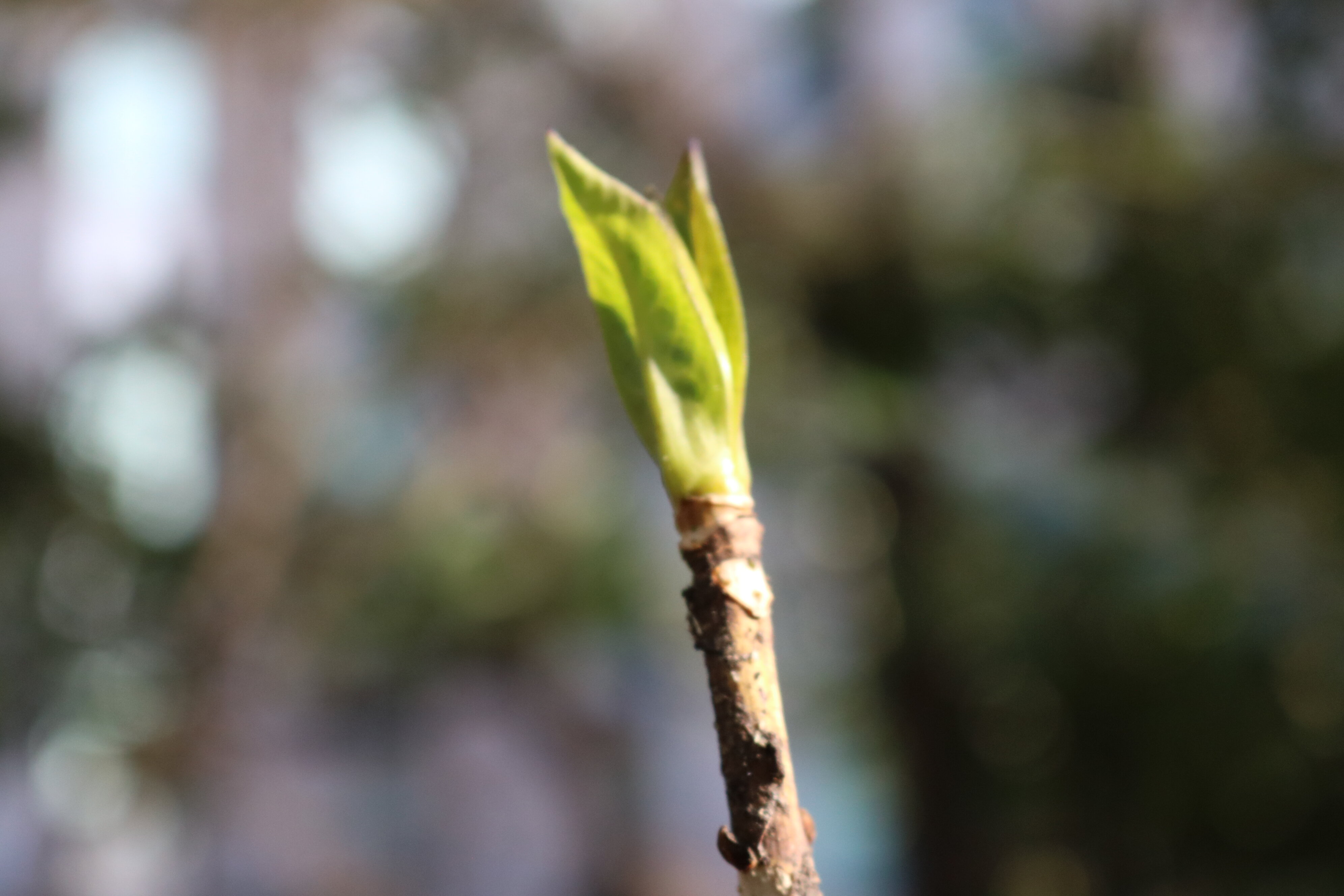 下の池のまわりを歩いてみると、ガクアジサイの新芽を発見!