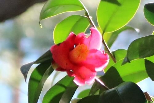 少し寂し気な千年の森を彩るのは、赤い椿。