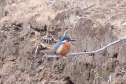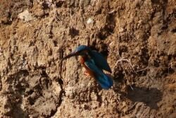 カワセミたちは、毎年上の池の土手に掘った穴で子育てを行っています。