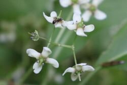 マユミの花を観察していると、蟻たちが甘い蜜を吸いにやってきました!
