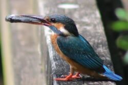 池の近くをのぞいていると、カワセミを発見!